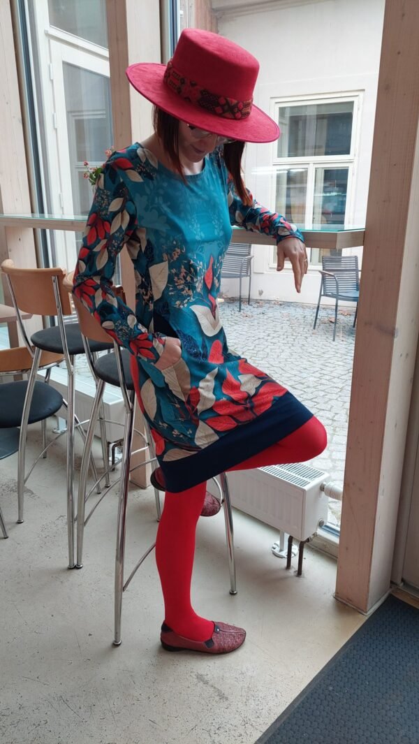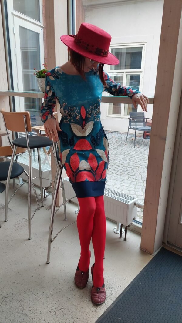 Šaty jsou ušité z příjemného bavlněného úpletu, který se přizpůsobí vaší postavě. Pružný materiál je pohodlný a nikde neškrtí 🙂